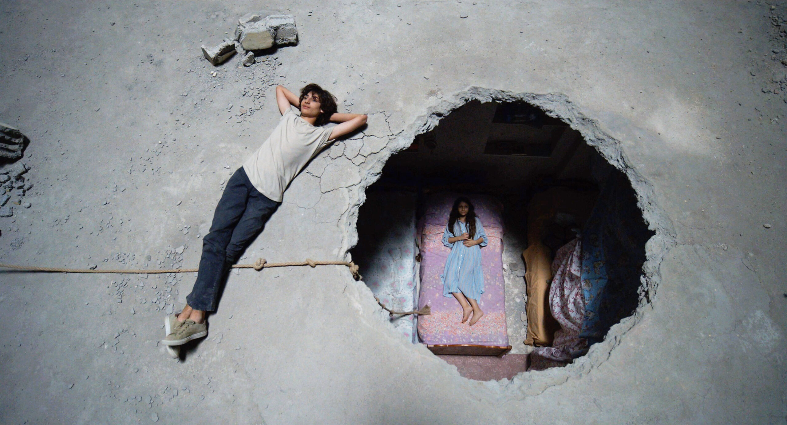 Un giorno, un ragazzo che vive nelle vicinanze cala una corda attraverso l’apertura nel tetto e così Zeina può vivere il primo assaggio di libertà. Mentre il padre è determinato a rimanere nella città assediata per non diventare uno sfollato, questa nuova finestra apre un mondo inimmaginabile di possibilità a lei e alla madre, che ora si trovano di fronte al dilemma se restare o fuggire.