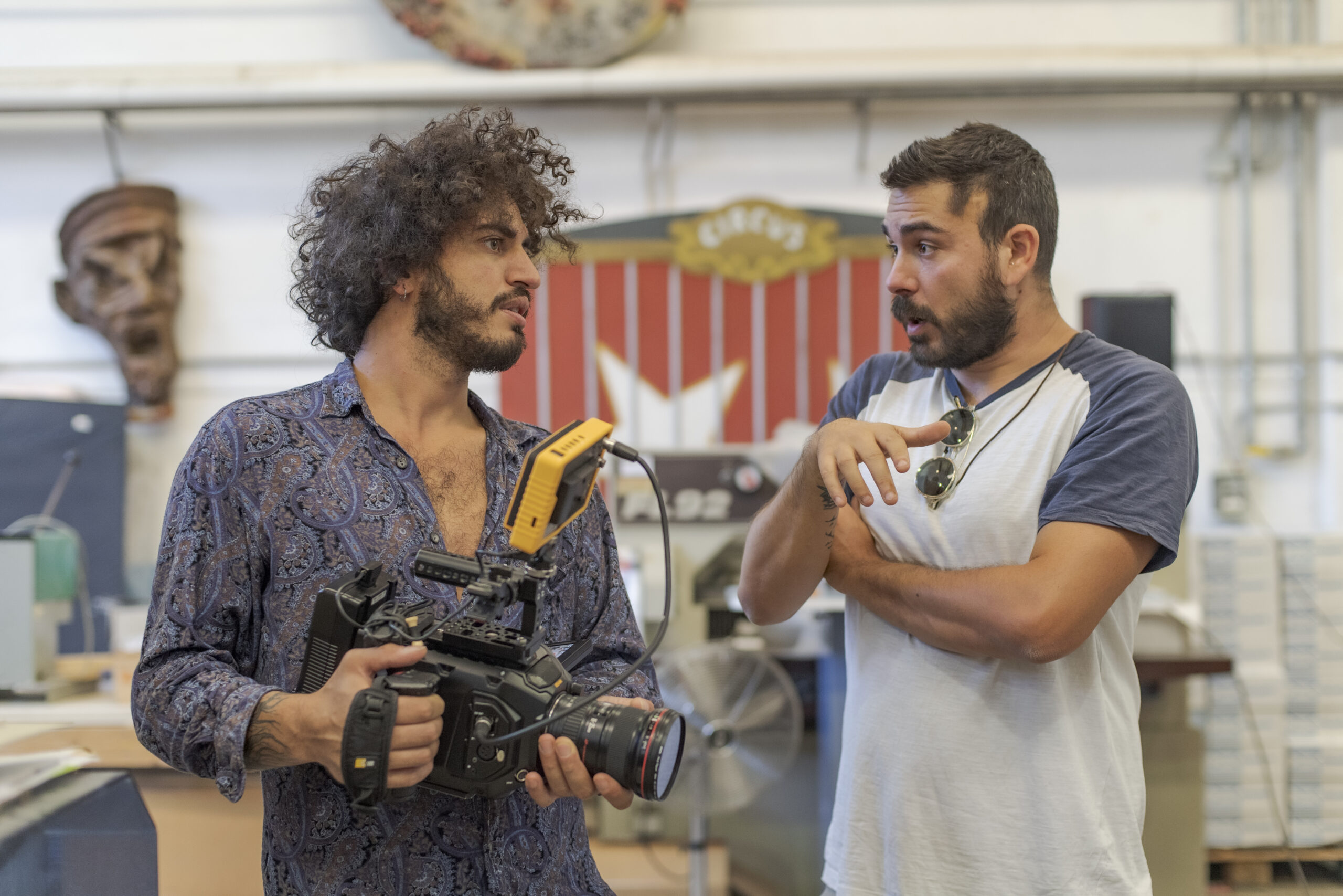 Da destra: Michael Petrolini e Valerio Lo Muzio nel backstage di ‘Romina’ (immagine per gentile concessione di Valerio Lo Muzio) – Michele Lapini (fotografo)