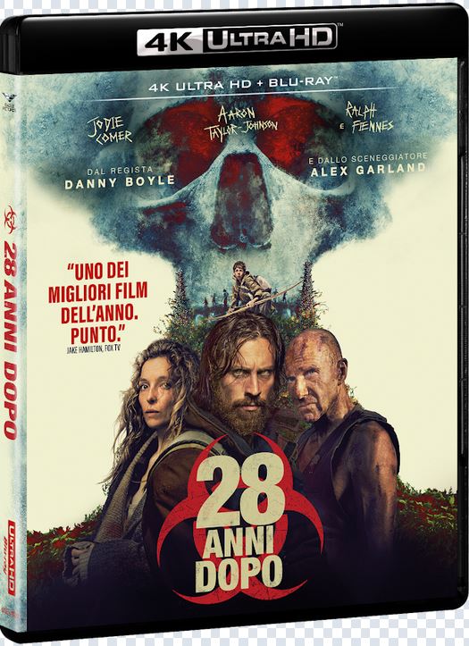 Tra i titoli più attesi del 2025, approda in home video per Eagle pictures 28 anni dopo. Un’edizione dispensatrice sia in 4K Ultra HD che su supporto blu-ray del terzo capitolo della saga horror cominciata nel 2002 tramite 28 giorni dopo. Terzo capitolo che vede il ritorno alla regia per Danny Boyle, sostituito nel 2007 da Juan Carlos Fresnadillo nel primo sequel 28 settimane dopo. Un terzo capitolo che, in realtà, rappresenta il tassello iniziale di una nuova trilogia con produttore esecutivo proprio il Cillian Murphy protagonista del capostipite.  Nel quale si raccontò di un’Inghilterra in preda ad un virus fuoriuscito da un laboratorio di ricerca e destinato a trasformare i comuni mortali in autentici assassini.