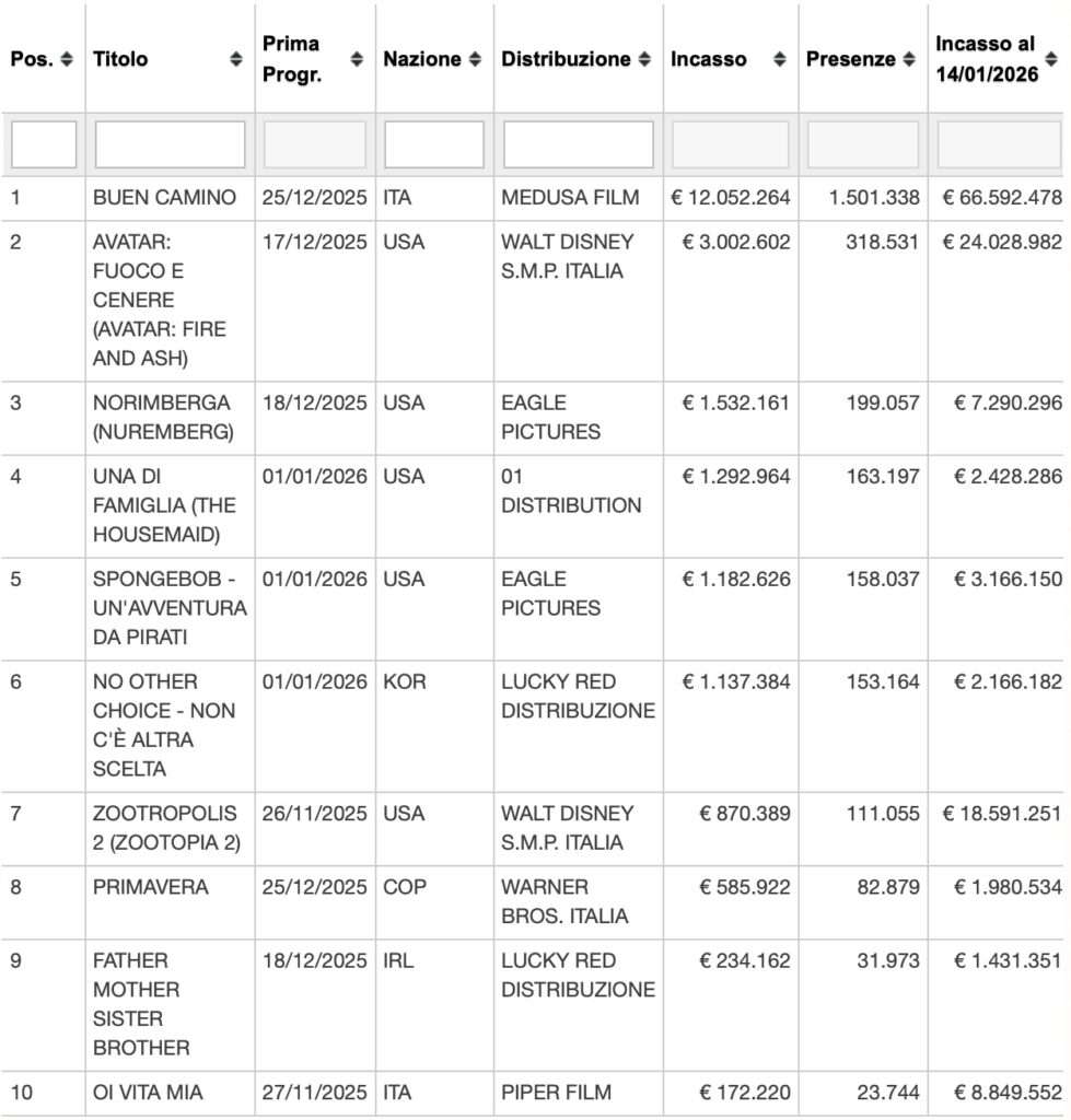 La stagione natalizia si è conclusa con risultati da record per il mondo del cinema. Zootropolis 2 continua a imporsi come uno dei titoli più forti dell’anno, mantenendo saldamente il suo posto ai vertici del box office. Nel frattempo, Avatar: Fuoco e Cenere macina incassi eccezionali, con una cammino che proseguirà almeno per tutto il mese di gennaio.