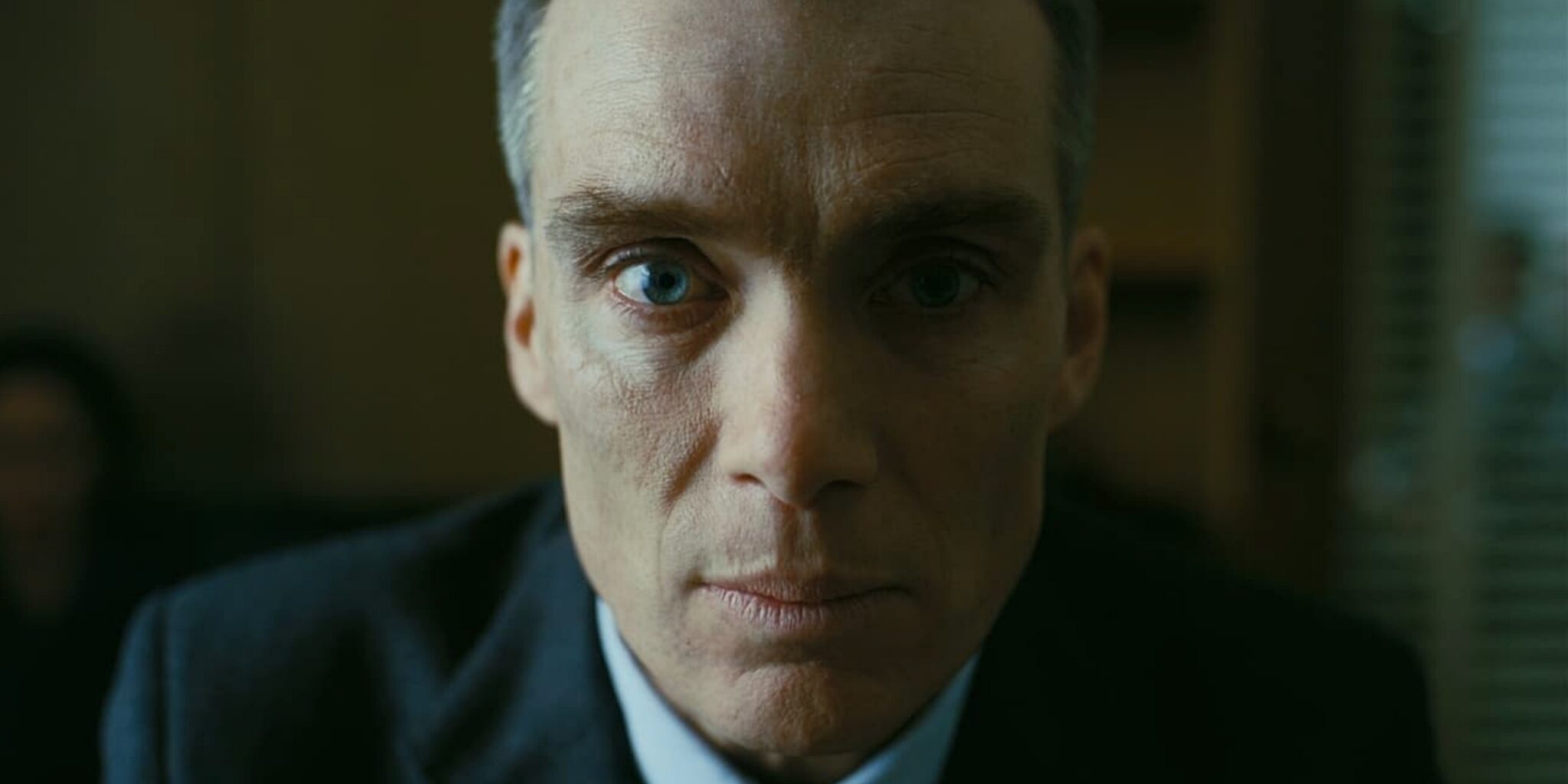 Altra scelta considerevole è quella del supporto filmico e dell’ampio utilizzo del primissimo piano. Oppenheimer è stato girato su pellicola di grande formato, alternando IMAX 65mm e Panavision 65mm: inquadrare in primissimo piano i volti fa percepire la differenza. Lo spettatore entra immediatamente in simbiosi con i personaggi inquadrati, andandone a scorgere le micro-espressioni, percependone i pensieri, le emozioni. Il volto diventa un paesaggio geografico ammaliante e l’emotività traspare senza filtri, isolando il personaggio con una profondità di campo estremamente ridotta.